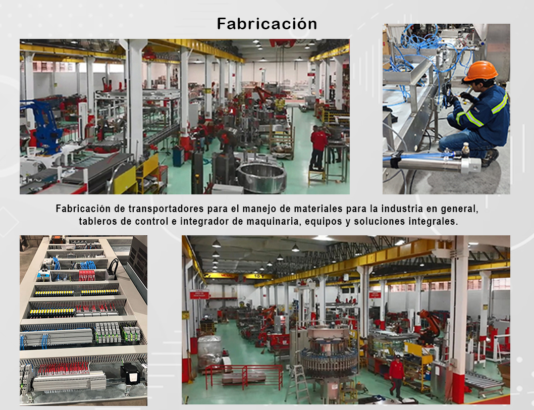 Fabricación de transportadores para el manejo de materiales para la industria en general, e integrador de maquinaria, equipos y soluciones integrales.