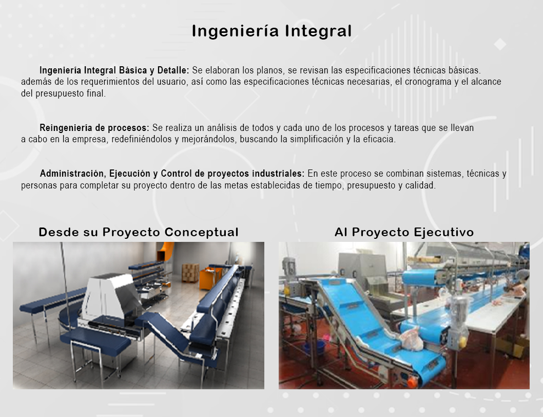 Ingeniería Integral básica y detalle, administración, ejecución y control de proyectos industriales.